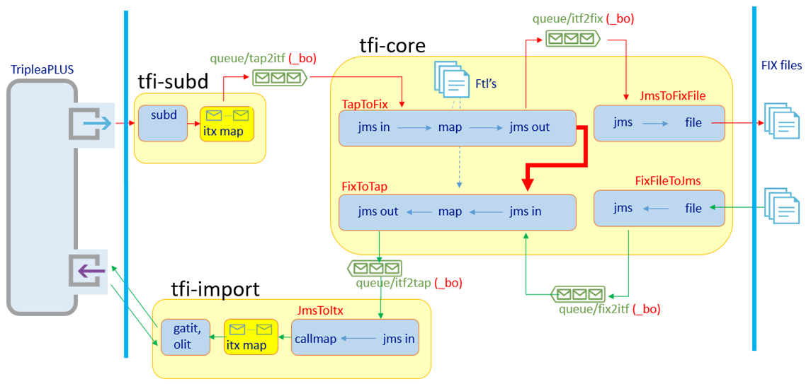 - Two ITX maps are used, to publish the FIX events out of TAP and to import the data back to TAP.