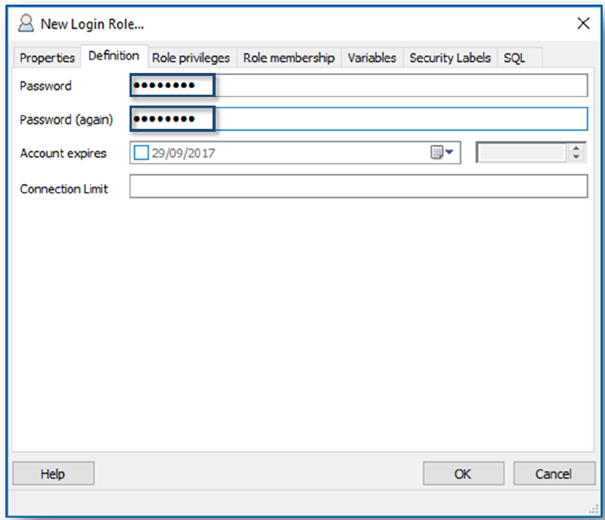 - Click OK to close the New Login Role dialog. The pgAdmin III application is displayed. We can then add a new Database and assign it to the User.