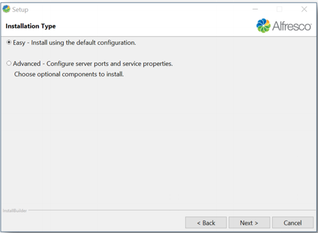 - Ready to Install: Setup is now ready to begin installing Alfresco.