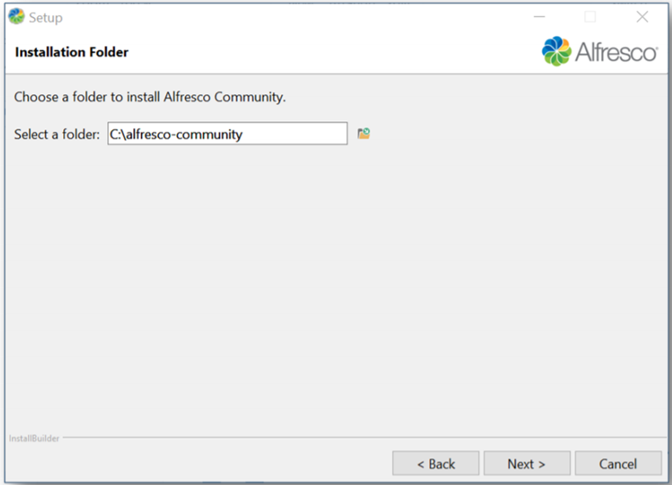 Click the Installer EXE file to start the Alfresco Community Installer.