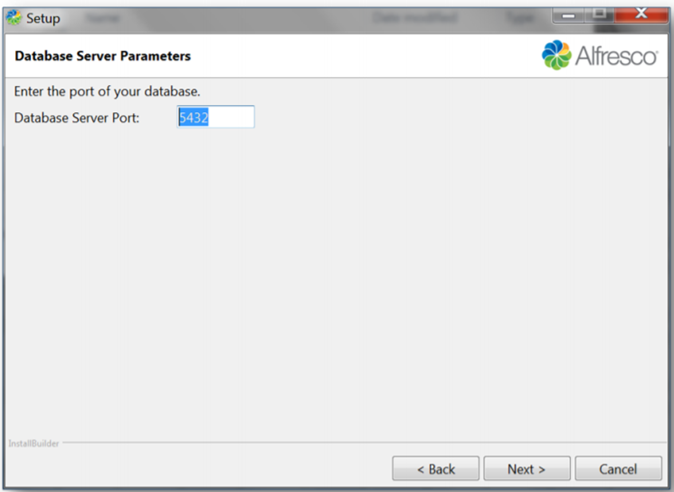 - Database Server Port: Enter the port number of the database Alfresco will use.
