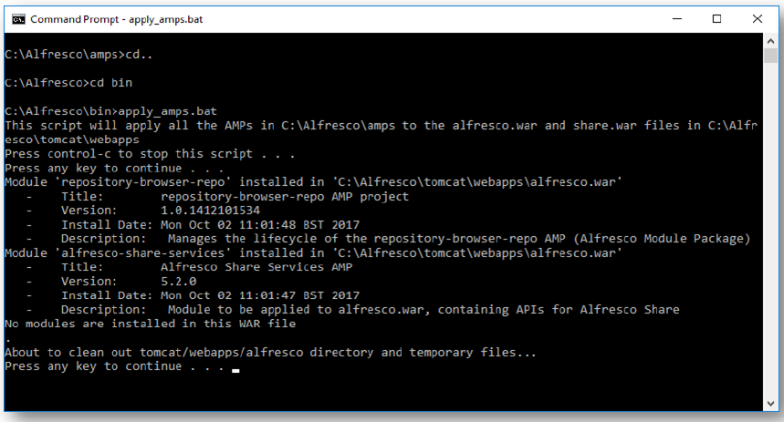 The following steps show you how to add an Alfresco Module Package (AMP). The AMP enables custom file type creation and specifically the use of Article Types and Placeholders within the Alfresco repository.