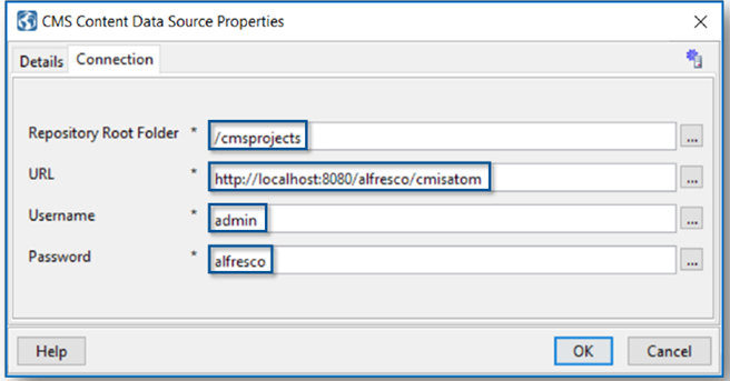 For example, the /cmisprojects folder above is then created under the Alfresco Repository Root Folder when you first run Live CMS.