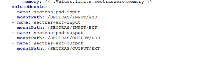 - Update the templates/sectraszero-deployment.yaml file to configure the container instance of mount location.