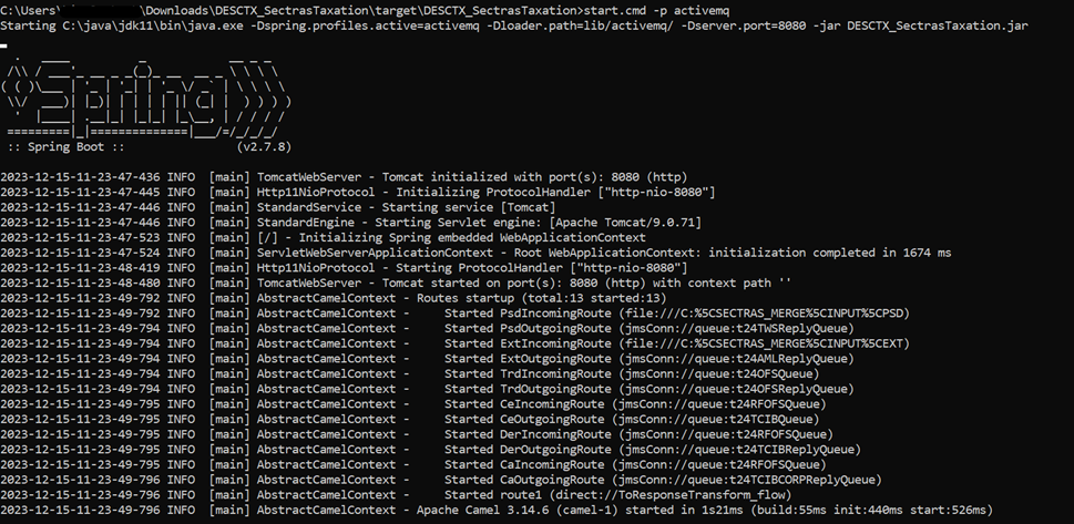 - Configure the java home path in the DESCTX_SectrasTaxation/start.cmd.