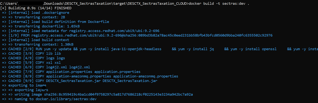 - Locate the folder where the image tar is located and open the command prompt to execute the following command. This will build the image.