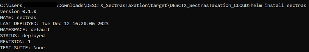 - Download the Sectras Taxation image TAR file and Helm charts that were provided and make them available in a folder in the destination system.