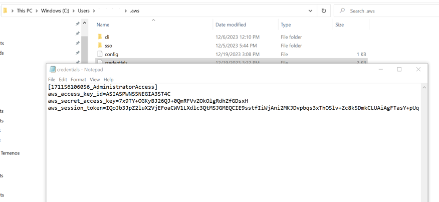 - Configure the .aws/credentials file as explained in the AWS start page.