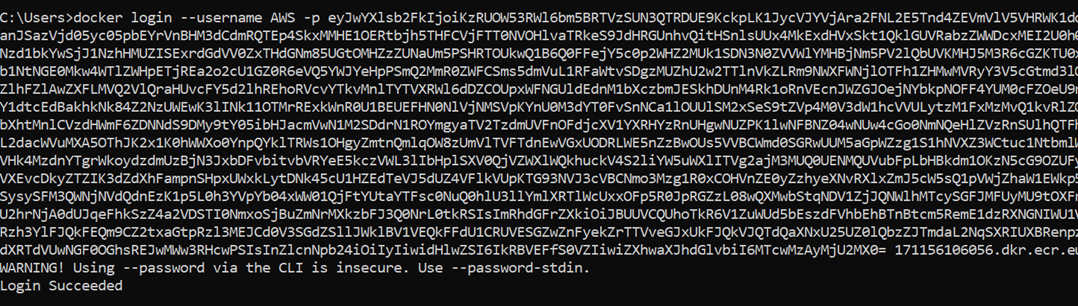 - Authenticate the docker to the ECR registry: docker login --username AWS -p (give password here from prev cmd) <ECR URI>