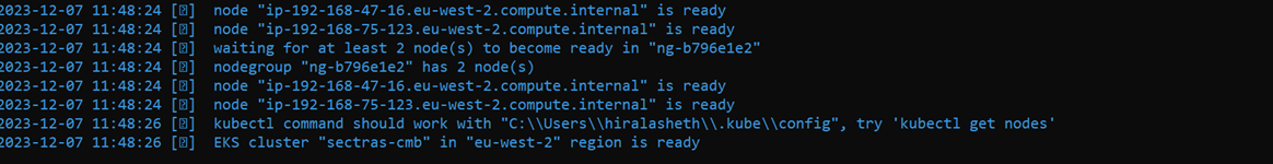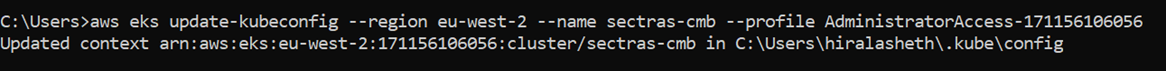 - Configure kubectl to connect to the EKS cluster: aws eks update-kubeconfig --region <region> --name <cluster name> --profile <profile>