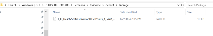- Place the jar in the following existing package folder ..\Temenos\t24home\default\Package.