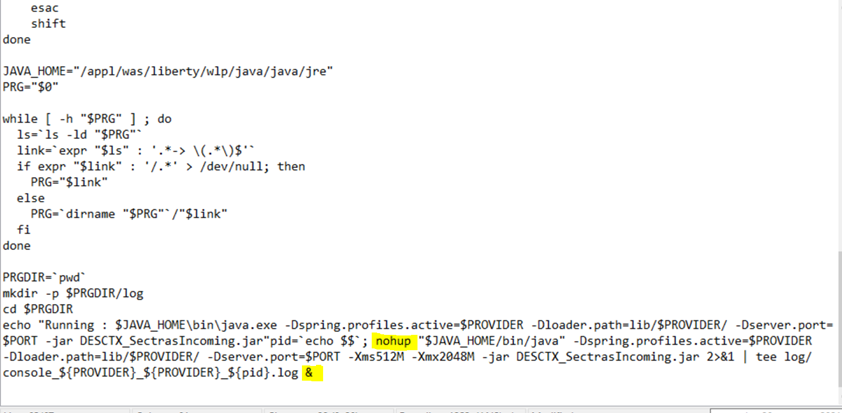 - Ensure that the “start.sh” has “LF” as a line separator.