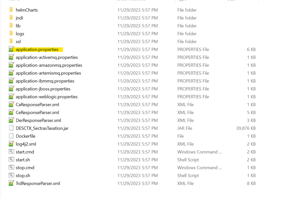 - Unzip the package DESCTX_SectrasTaxation and place it in the required folder. The contents of the package will be as in the below snapshot.