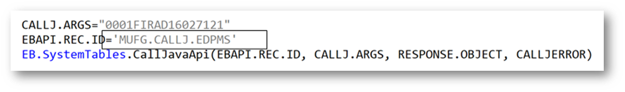- Below are the sample codes for calling the InlendInvokeRegulatoryApi.jar from routines.