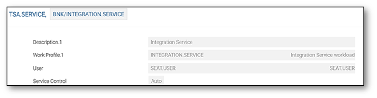 - Start the TSM and BNK/INTEGRATION.SERVICE services in Temenos Transact using the TSA.SERVICE application. It is advised to keep the BNK/INTEGRATION.SERVICE service in AUTO mode. Sample screenshots are given below.