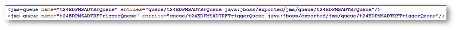 - The queues required for the file extracts have to be configured in Temenos Transact in the ...\jboss\standalone\configuration\standalone-utp.xml path.