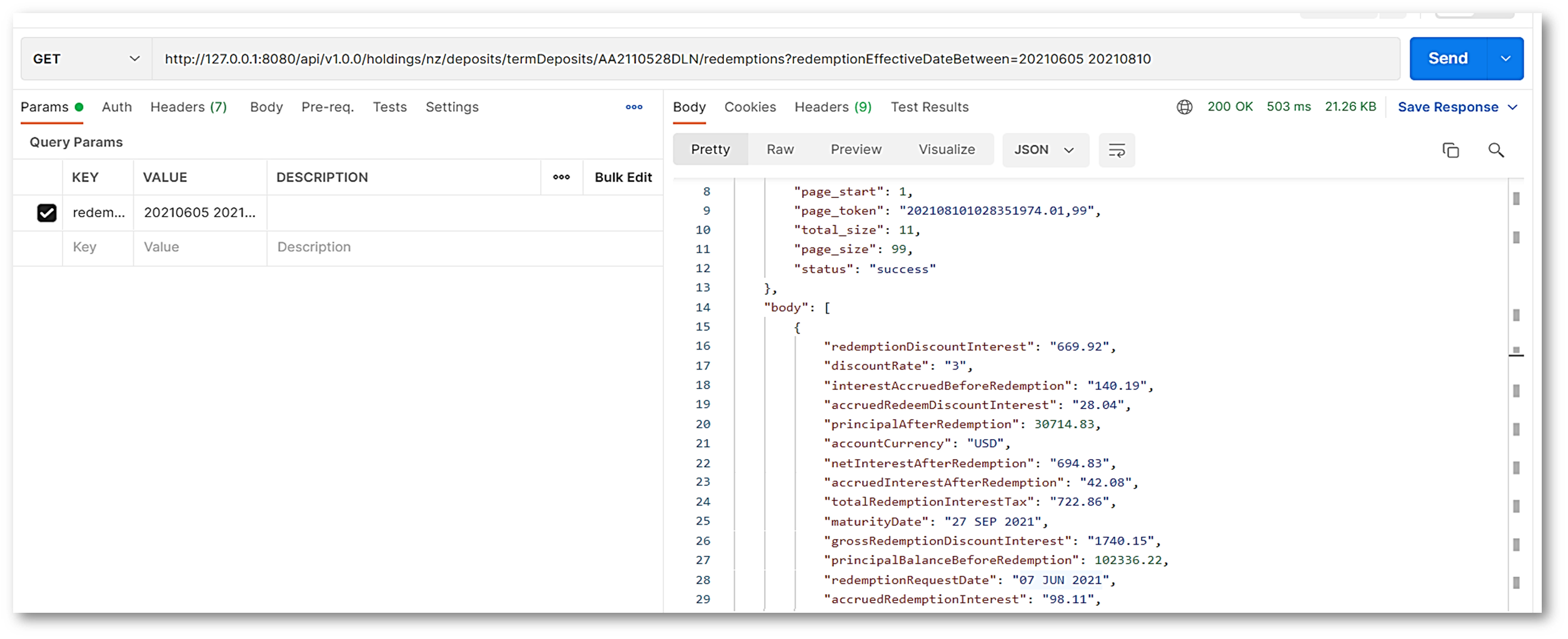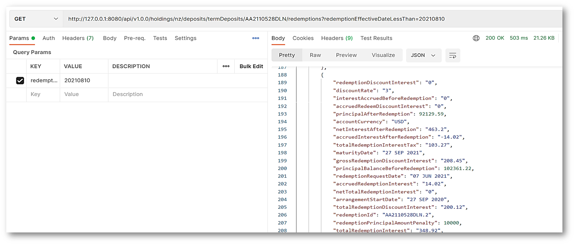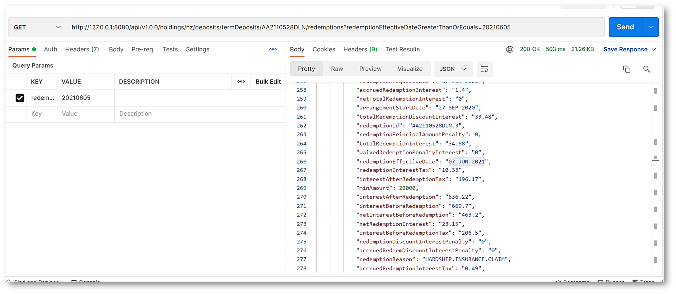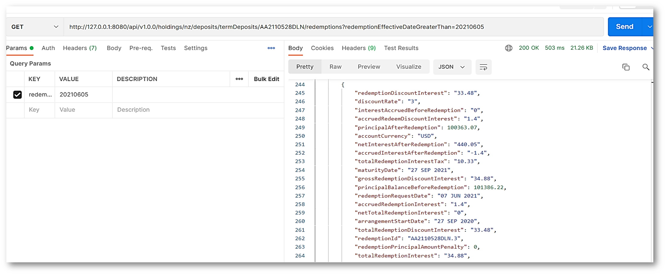 For Greater Than: http://127.0.0.1:9089/NZDEPO_Redemption_Container/api/v1.0.0/holdings/nz/deposits/termDeposits/AA2110548R4K/redemptions?redemptionEffectiveDateGreaterThan=20210605