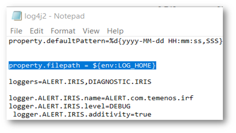 - For the creation of the log file, add the location in the log4j2.properties file available in the location (NZDEPO_Redemption_Container.war\WEB-INF\classes\). For example, to create in the C directory, give the C:// in the highlighted property.