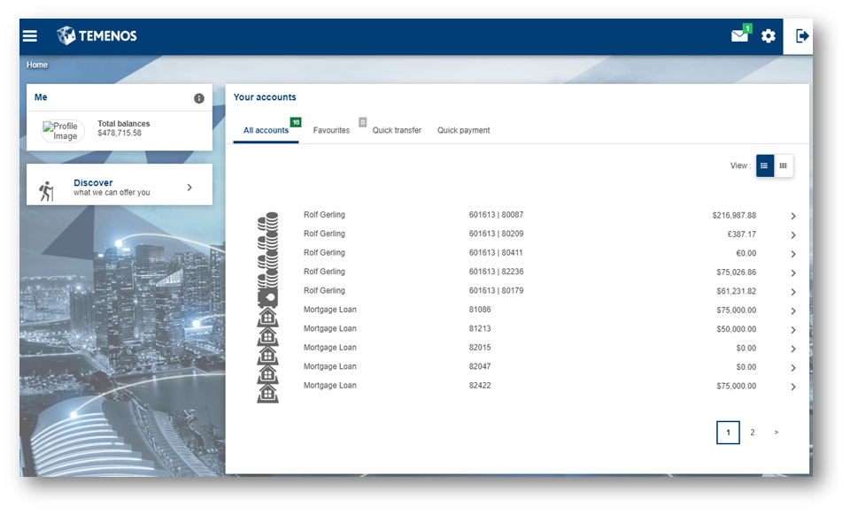 - If all the configuration steps were successful, the Internet and Mobile Banking Retail application will load the user’s homepage.