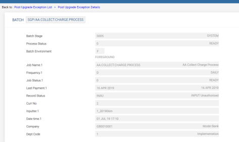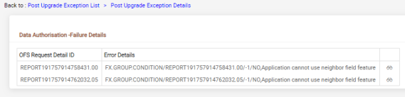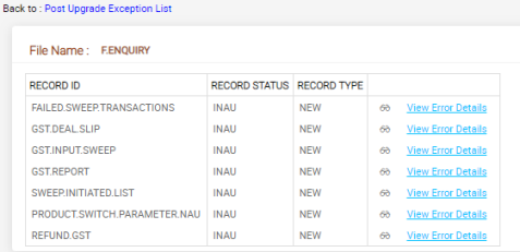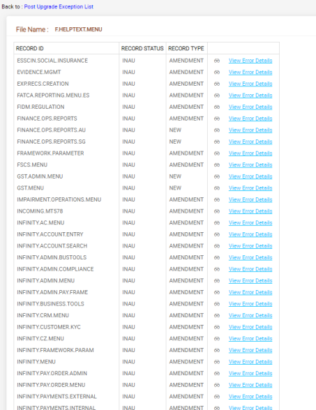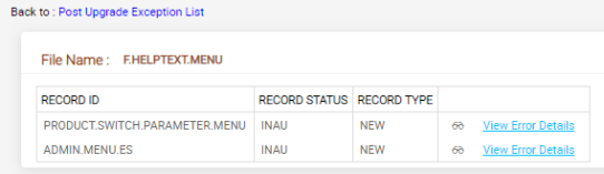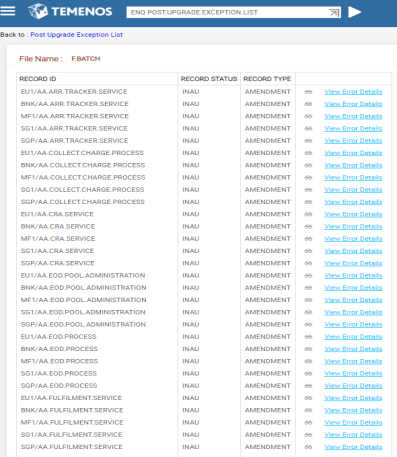 You can use the POST.UPGRADE.EXCEPTION.LIST enquiry to monitor the list of data items released in exception during generic upgrade, updates, product installation and data items released from an online upgrade. This section provides you the details of the corresponding enquiries and reports.