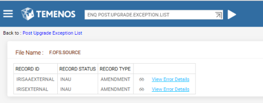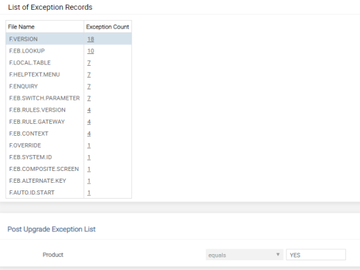The POST.UPGRADE.EXCEPTION.LIST enquiry fetches all the data items released through online upgrade and module installation, without any selection criteria.
