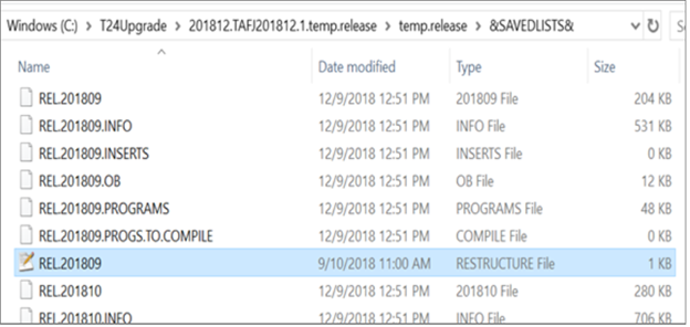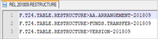 The REL.release.RESTRUCTURE file available in the temp.release/&SAVEDLIST& directory contains the restructure definition list. This file gets released to T24 environment during T24.PRE.RELEASE.