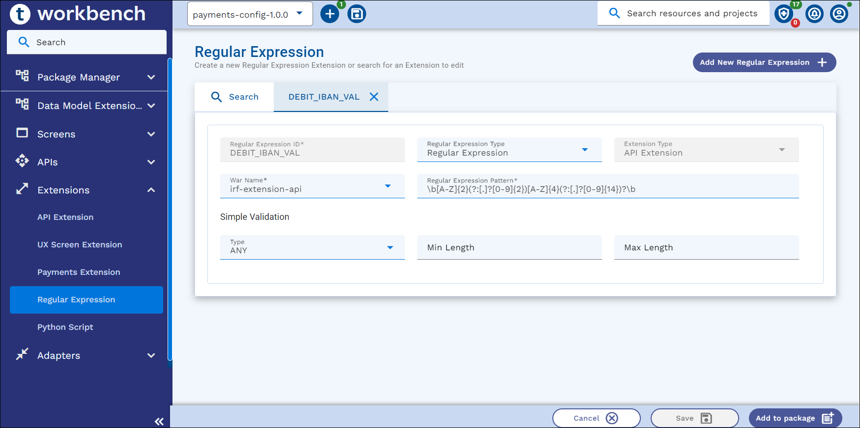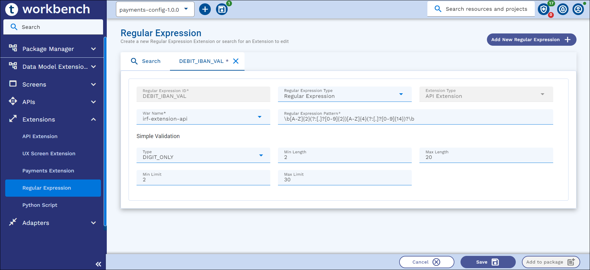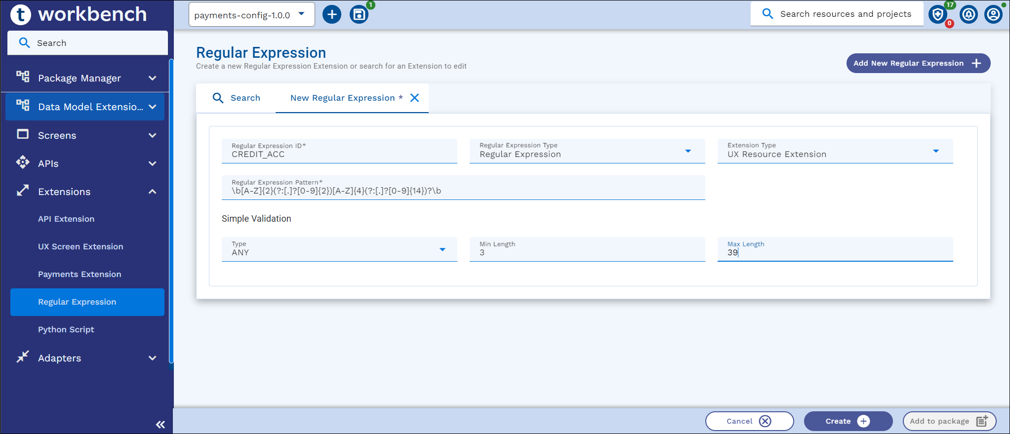 This section explains how to create a new Regular Expression validation, search, edit and package an existing Regex.