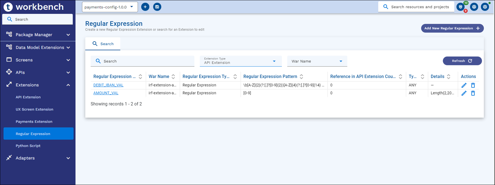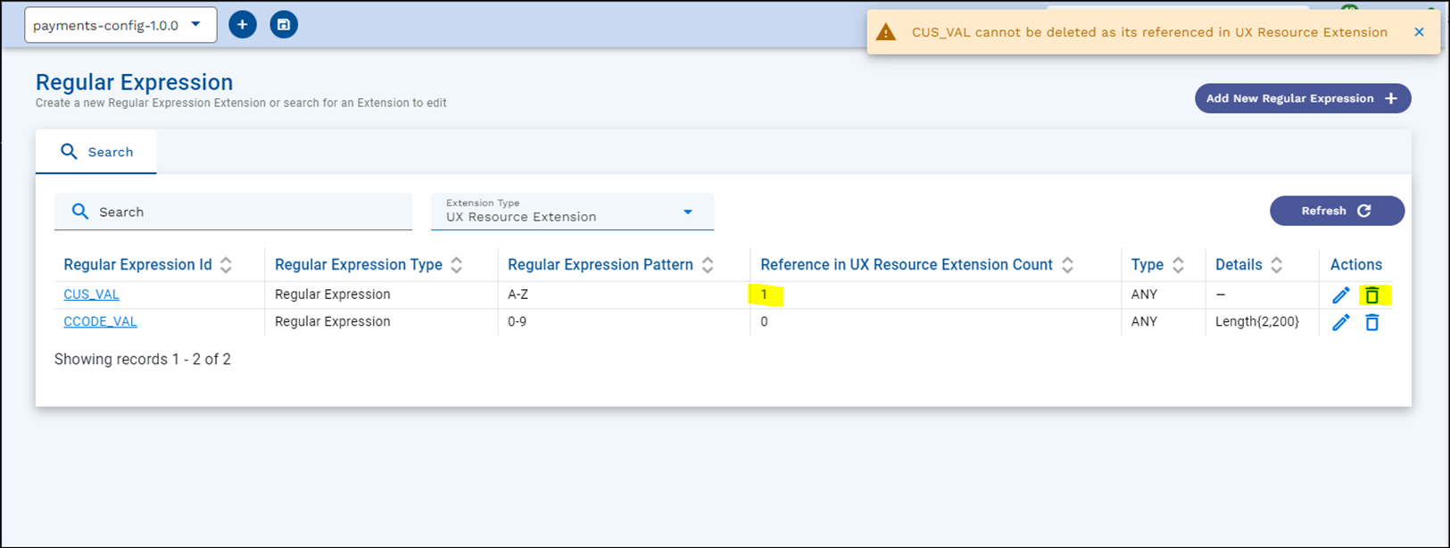 - Regular Expression delete is applicable for two extension types namely: API Extension and UX Resource Extension