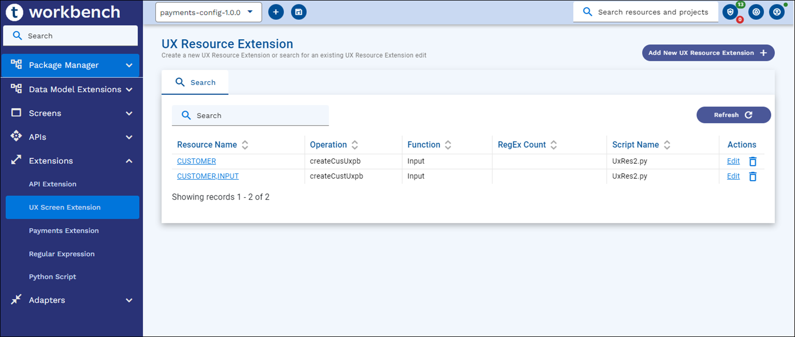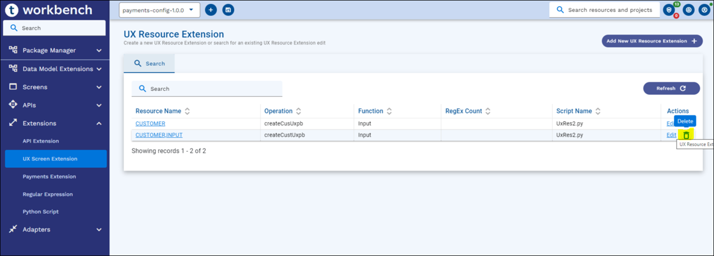 This section details about deleting a UX Resource Extension. To delete an existing UX Resource Extension,