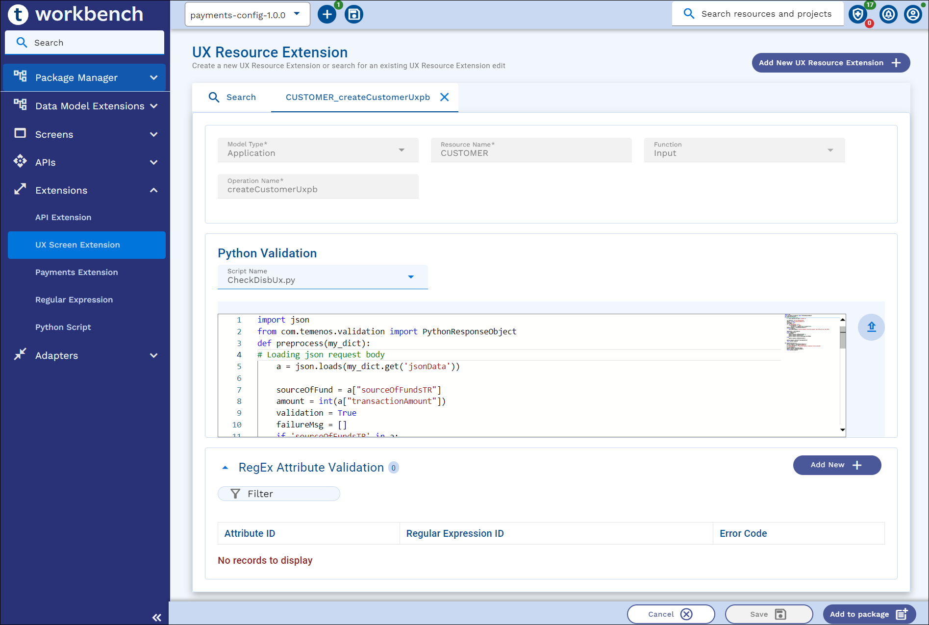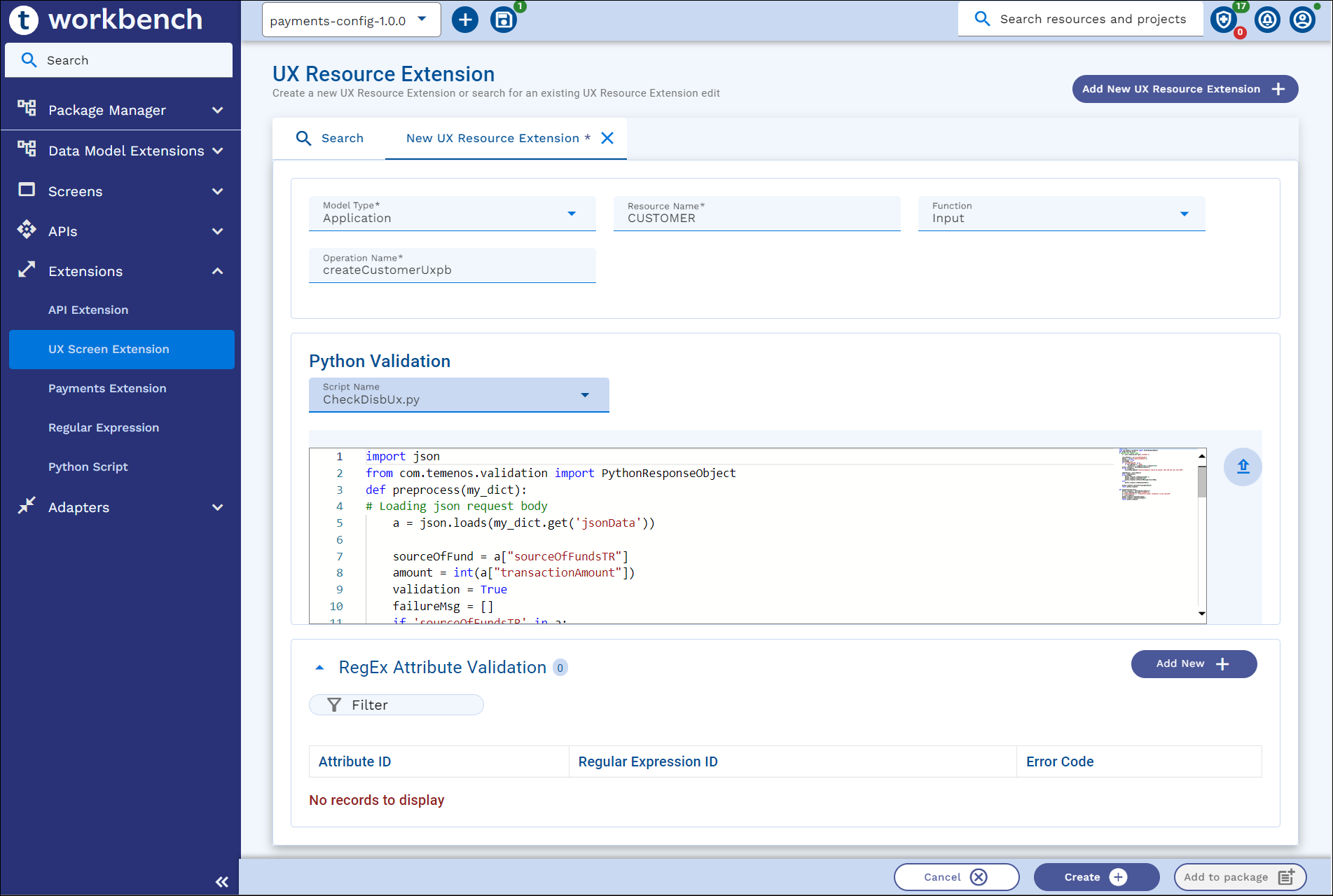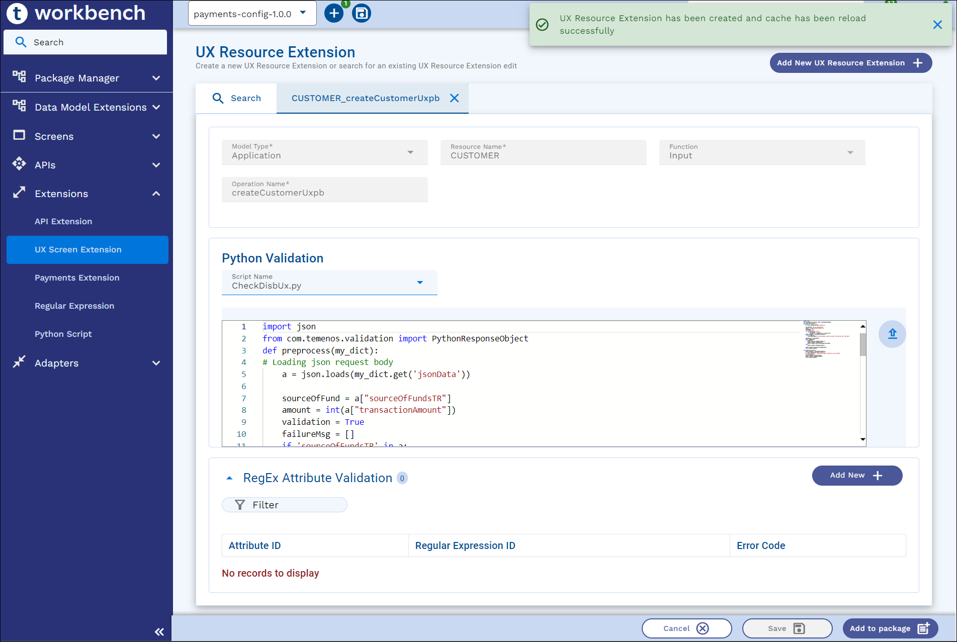 Note: Only ‘UX Resource Extension’ type Python Script will be listedYES (if RegEx Attribute validation is not given)