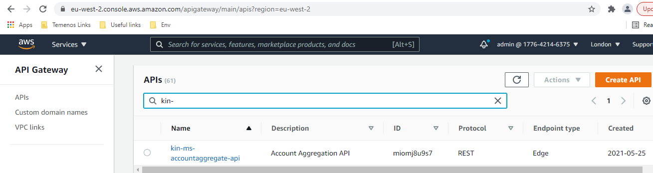 Resource path of the endpoint can be found in the swagger document. A sample endpoint of accountaggregate microservice is https://samplehost.execute-api.eu-west-2.amazonaws.com/ms-accountaggregate-api/v1.0.0/system/banks/{bankid}Rest API Id can be obtained from Amazon API Gateway or Git logs as follows: