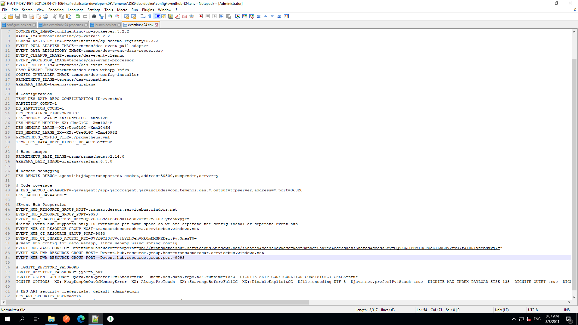 - Navigate to F:\UTP-DEV-RET-2021.03.04-01-1064-saf-retailsuite-developer-s08\Temenos\DES\des-docker\config\eventhub-t24.env.