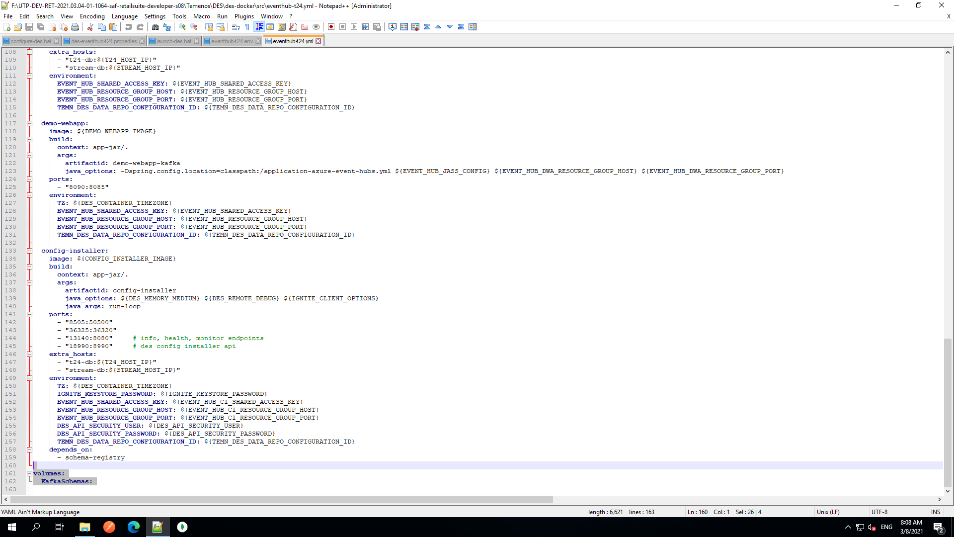 - Navigate to F:\UTP-DEV-RET-2021.03.04-01-1064-saf-retailsuite-developer-s08\Temenos\DES\des-docker\src\eventhub-t24.yml.