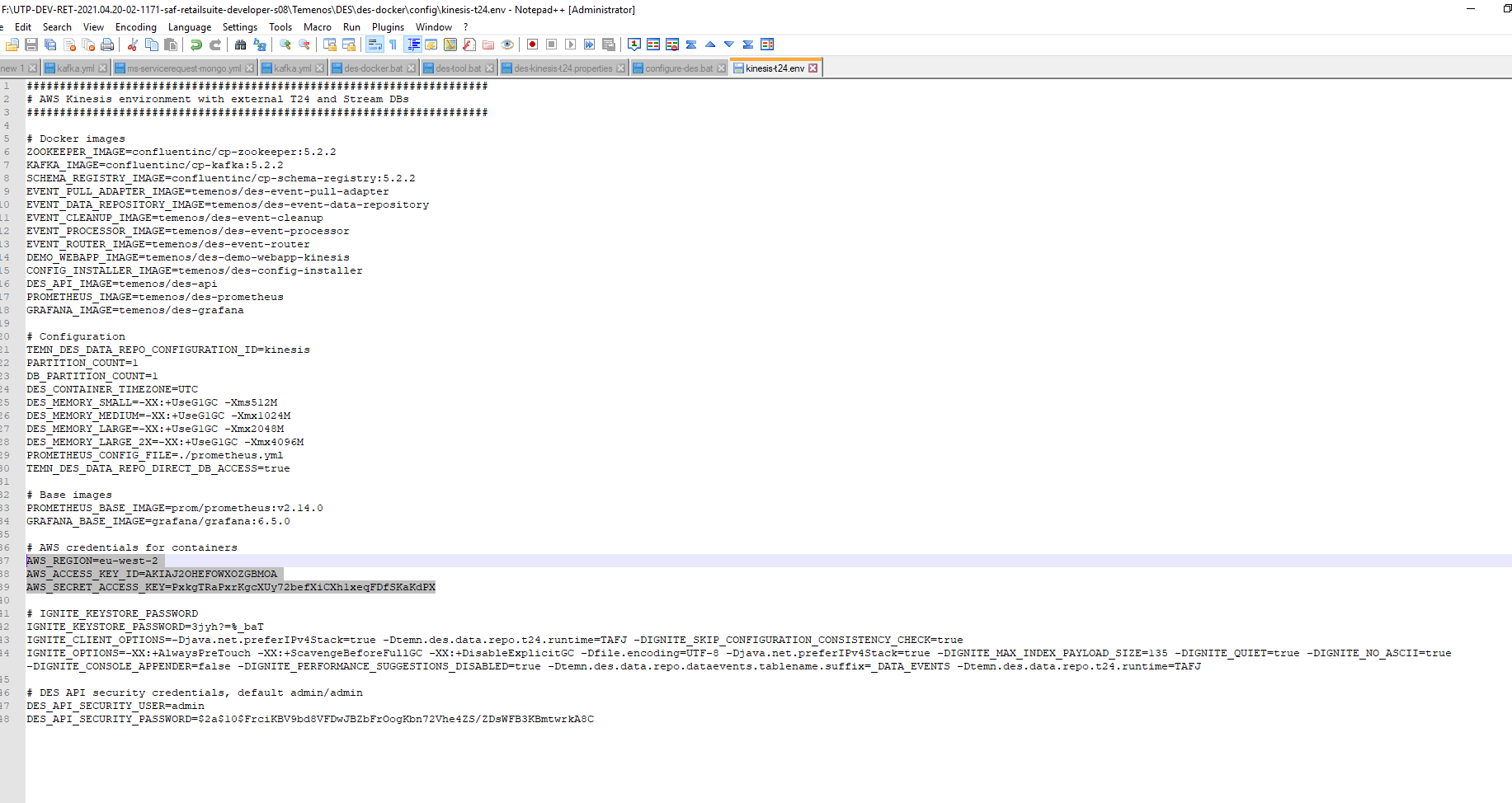- Navigate to F:\UTP-DEV-RET-2021.03.04-01-1064-saf-retailsuite-developer-s08\Temenos\DES\des-docker\config\kinesis-t24.env.