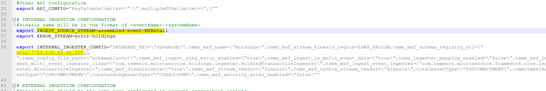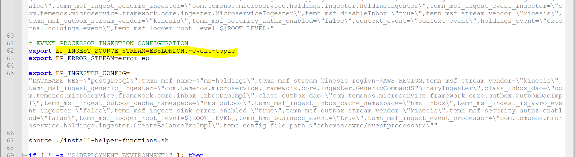 Here, EP_INGEST_SOURCE_STREAM - kinesis for Event Processor.