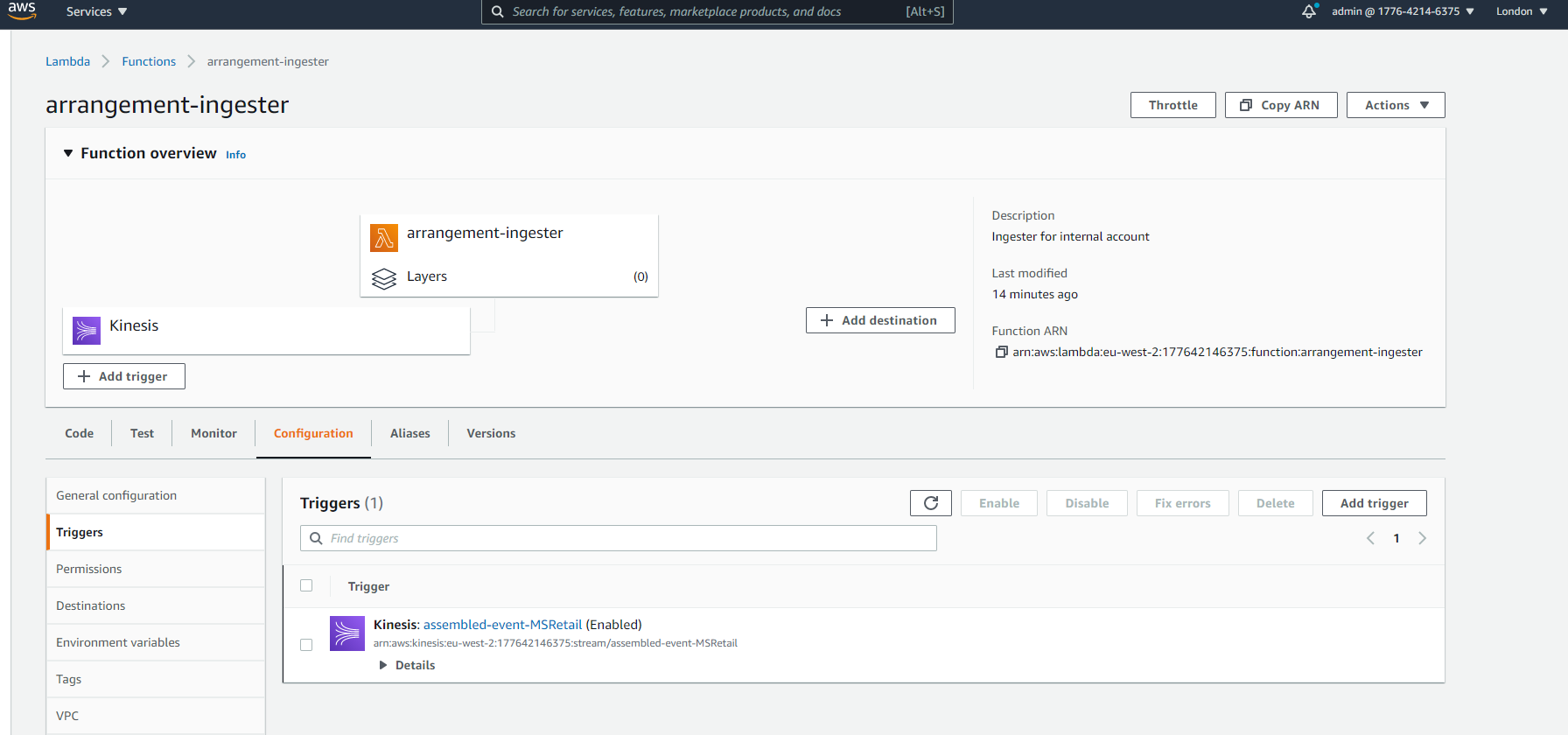 If you execute the install-aws.sh, the <multideployment>-EBSLONDON.-event-topic kinesis will be automatically created and it will be linked to the EventProcessor Ingestion Lambda Function.