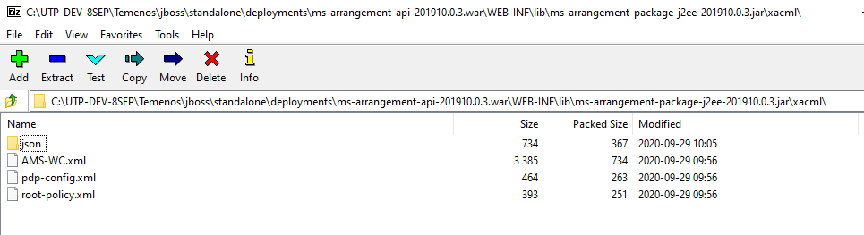 The XACML files are available in the ms-arrangement-api.war\WEB-INF\lib\ms-arrangement-package-j2ee-201910.0.3.jar\xacml\ path.