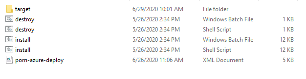 - In a command prompt, go to the installation directory and modify the details such as resource group, location, DB details, etc., in the install.sh/install.bat script specific to the installation.
