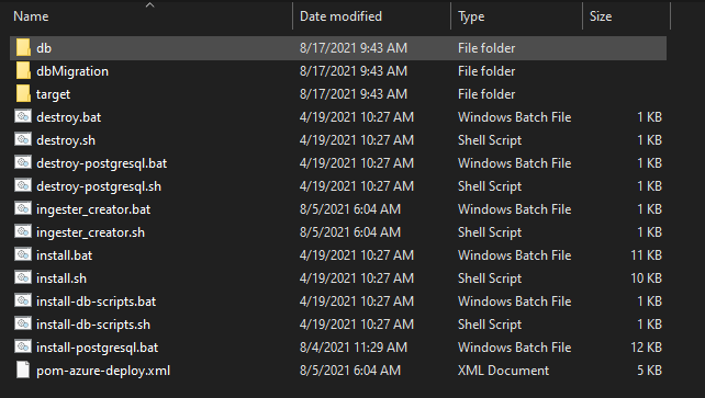 The install.sh/install.bat/install-postgresql.bat/install-postgresql.sh script is used to deploy the Origination Data Storage Microservices in the Standalone Mode.
