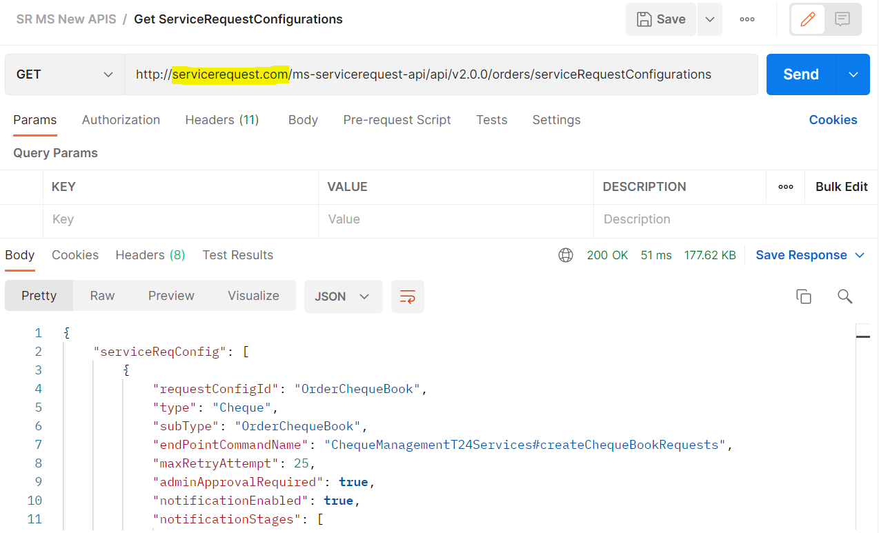 - Access the ServiceRequest APIs using the domain name (servicerequest.com).