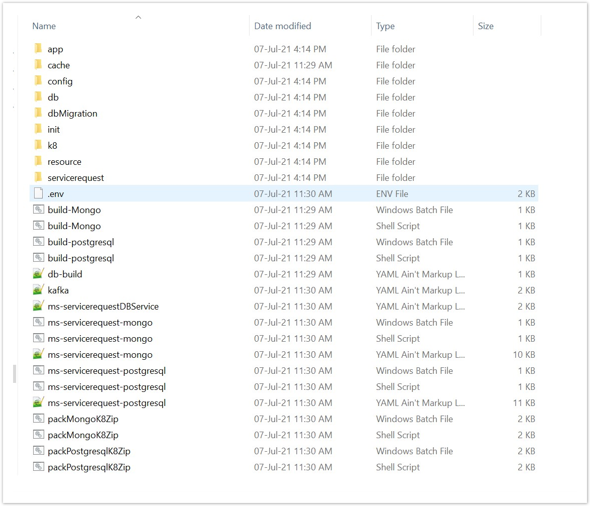 Service Request Microservices for docker deployment is available as single release bundle ms-servicerequest-package-docker-<release_number>.zip. Kubernetes (k8) pack is available inside src/docker.
