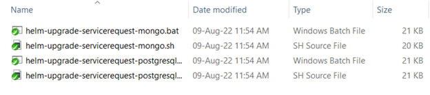 - To upgrade an existing helm chart, navigate (ms-servicerequest-package\ms-servicerequest-package-docker\target\ms-servicerequest-helm-postgres-pack-DEV.0.0-SNAPSHOT\upgrade) to the upgrade folder in the root helm package.