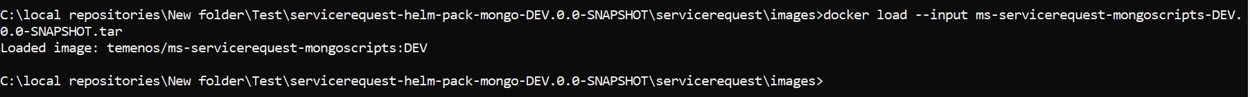 In this deployment approach, use the servicerequest-helm-pack-mongo-<release_number>.zip to load the docker images for MongoDB and then follow the below steps to generate the helm images for API, DB initialization from the Docker package