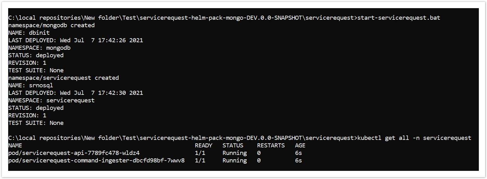 - Navigate to serviceorder\ms-servicerequest-package\ms-servicerequest-package-docker and execute the command mvn -f mongo-helm-pack.xml install to generate the servicerequest-helm-pack-mongo-<release_number>.zip.