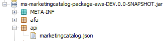 Marketing Catalog Microservices for AWS deployment is available as single release bundle. For example, ms-marketingcatalog-package-aws-<release_number>.zip. It consists of the ms-marketingcatalog-package-aws-<release_number>.jar file and AWS script files.
