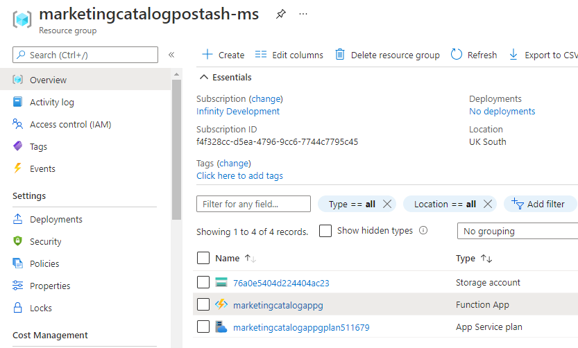 - Login into the Azure portal and check whether the Resource Group and Function app is created.