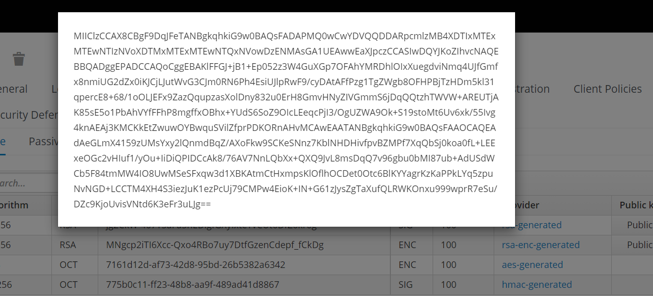<beans:bean id="oidcProviderServer" class="com.temenos.security.oidc.common.OidcProviderServer"> <beans:property name="issuer" value="http://10.92.201.101:8080/auth/realms/iris" /> <beans:property name="pkEncoded" value="" /> <beans:property name="pkCertEncoded" value="MIIClzCCAX8CBgF9DqJFeTANBgkqhkiG9w0BAQsFADAPMQ0wCwYDVQQDDARpcmlzMB4XDTIxMTExMTEwNTIzNVoXDTMxMTExMTEwNTQxNVowDzENMAsGA1UEAwwEaXJpczCCASIwDQYJKoZIhvcNAQEBBQADggEPADCCAQoCggEBAKlFFGJ+jB1+Ep052z3W4GuXGp7OFAhYMRDhlOIxXuegdviNmq4UJfGmfx8nmiUG2dZx0iKJCjLJutWvG3CJm0RN6Ph4EsiUJlpRwF9/cyDAtAFfPzg1TgZWgb8OFHPBjTzHDm5kl31qpercE8+68/1oOLJEFx9ZazQqupzasXolDny832u0ErH8GmvHNyZIVGmmS6jDqQQtzhTWVW+AREUTjAK85sE5o1PbAhVYfFFhP8mgffxOBhx+YUdS6SoZ9OIcLEeqcPjI3/OgUZWA9Ok+S19stoMt6Uv6xk/55Ivg4knAEAj3KMCKkEtZwuwOYBwquSVilZfprPDKORnAHvMCAwEAATANBgkqhkiG9w0BAQsFAAOCAQEAdAeGLmX4159zUMsYxy2lQnmdBqZ/AXoFkw9SCKeSNnz7KblNHDHivfpvBZMPf7XqQbSj0koa0fL+LEExeOGc2vHIuf1/yOu+IiDiQPIDCcAk8/76AV7NnLQbXx+QXQ9JvL8msDqQ7v96gbu0bMI87ub+AdUSdWCb5F84tmMW4IO8UwMSeSFxqw3d1XBKAtmCtHxmpsKlOflhOCDet0Otc6BlKYYagrKzKaPPkLYq5zpuNvNGD+LCCTM4XH4S3iezJuK1ezPcUj79CMPw4EioK+IN+G61zJysZgTaXufQLRWKOnxu999wprR7eSu/DZc9KjoUvisVNtd6K3eFr3uLJg==" /> <beans:property name="pkCertFilePath" value="" /> <beans:property name="pkJwksUri" value="" /> <beans:property name="decryptingJwkEncoded" value="" /> <beans:property name="principalClaim" value="username" /> </beans:bean>