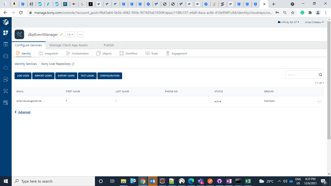 | konyUserId | externaluser@external.com | User ID of admin user from User Store, this is used against the identity service | Fabric |