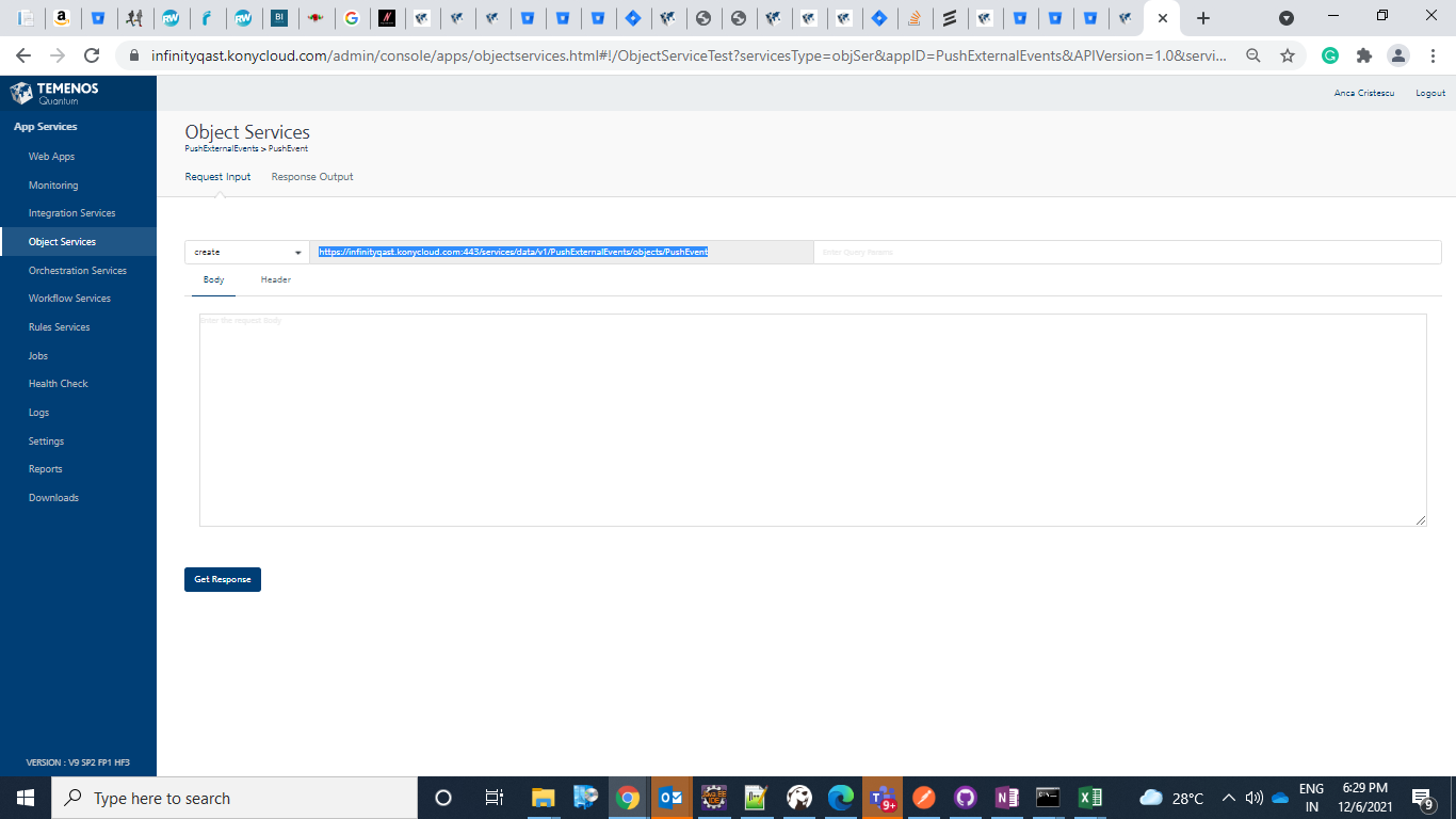The service URL value can be retrieved from the Request Input tab.