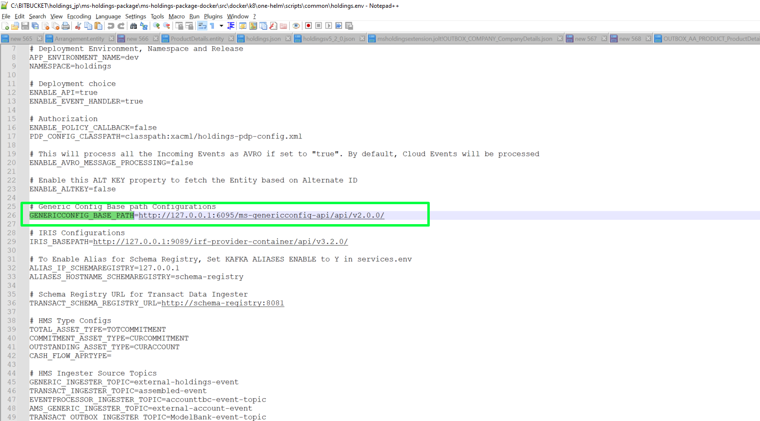 - To configure K8, add the base path of the Generic Config MS to GENERICCONFIG_BASE_PATH in the holdings.env file as shown below.